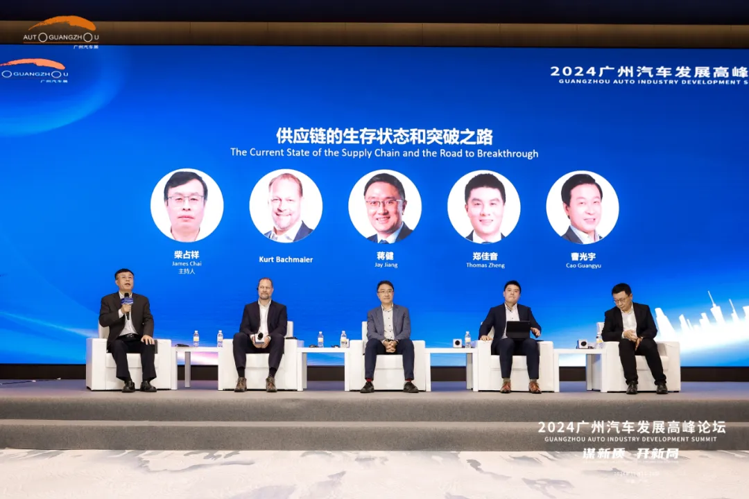 11月16日下午,在2024广州汽车发展高峰论坛——“供应链的生存状态和突破之路”圆桌讨论环节,麦格纳整车事业部全球销售与市场副总裁Kurt Bachmaier, 博世中国副总裁蒋健,DS集团联合创始人、现任DS集团董事长郑佳音,上海挚达科技发展股份有限公司执行总裁曹光宇,在中国国际贸易促进委员会汽车行业委员会助理会长柴占祥的主持下,围绕上述话题展开分享。